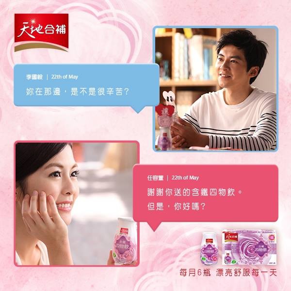 而貼心的國毅,每個月寄一盒天地合補含鐵四物飲,讓遠在異鄉的容容每天都能漂亮舒服